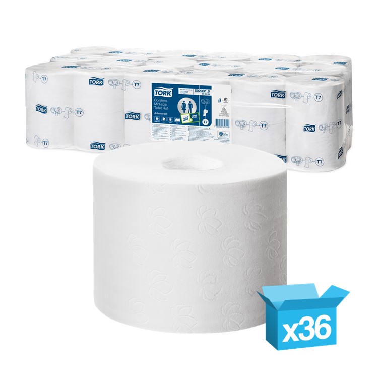 Tork 2ply white Coreless mid-size toilet rolls 472630