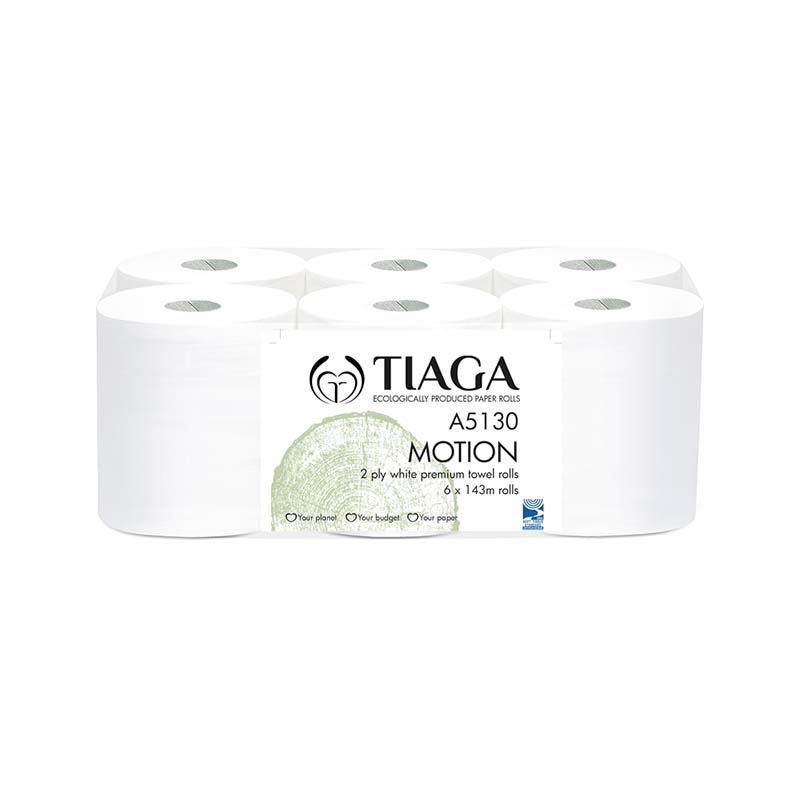 Tiaga Motion 2ply white towel roll 143m