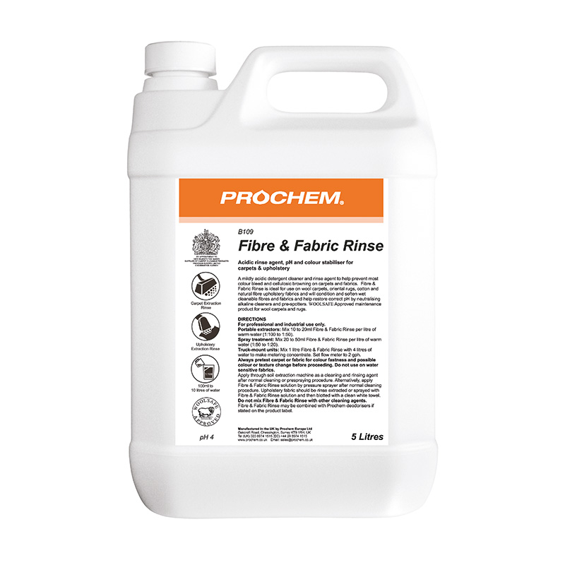 A professional acidic rinse agent or post spray for neutralising alkaline pre-sprays, stabilising colours and preventing browning.WoolSafe approved maintenance product for wool carpets and rugs.Prevents most colour bleed, yellowing and browning.Orange liquid with fresh orange peel fragrance.
