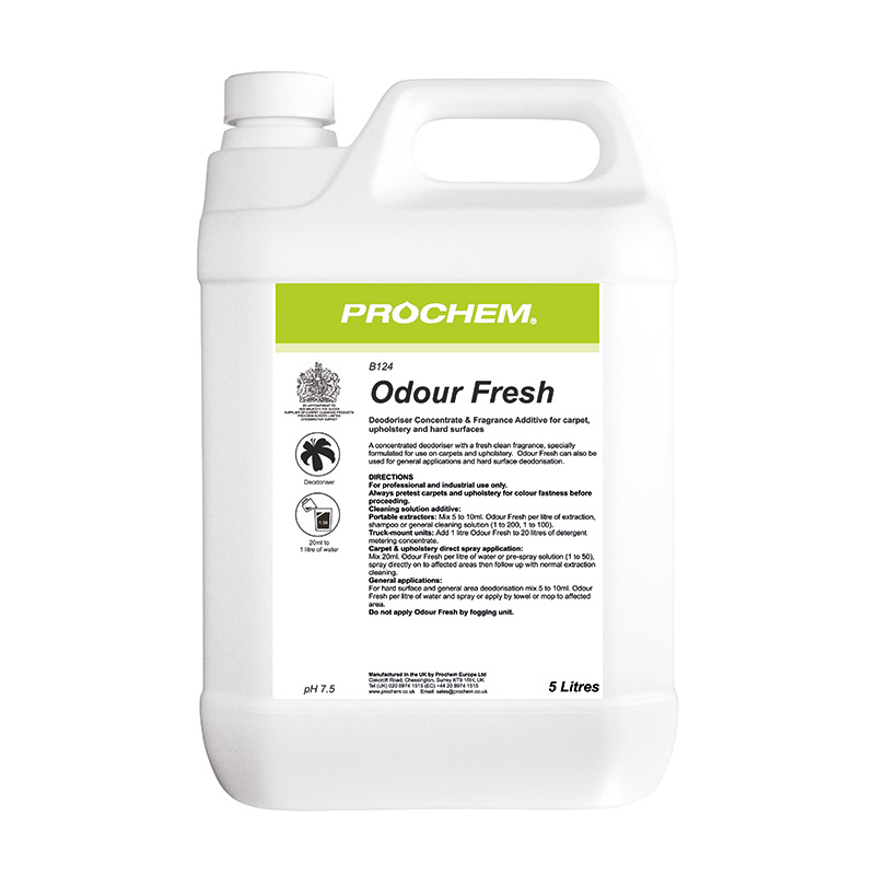 Professional formula with high quality deodorisers which can be added to any carpet, fabric or general cleaning solution.Clear liquid with floral fragrance.