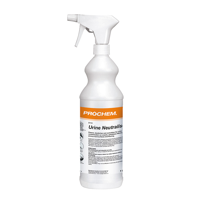 Exclusive Prochem acidic deodorant for neutralising and deodorising urine by direct application.Neutralises odour from urine deposits on contact and prevents staining.Yellow tinted liquid with fresh fragrance.