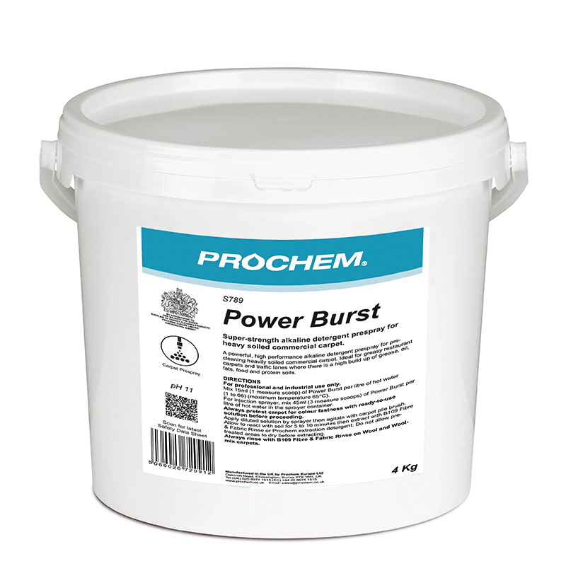 Enzyme-free high performance alkaline detergent pre-spray for pre-cleaning heavily soiled commercial carpet.Ideal for greasy restaurant carpets and traffic lanes where there is a high build-up of grease.Can be pre-diluted for use in injection sprayers.White powder with floral fragrance.