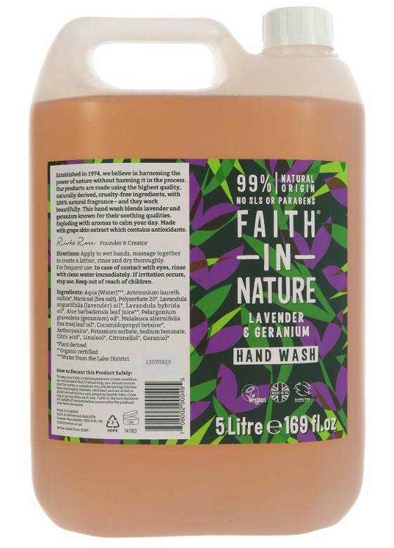 Faith in Nature Hand Wash - Lavender & Geranium 5ltr