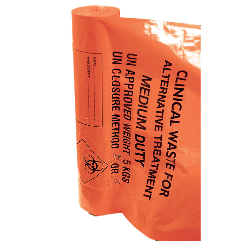 Orange clinical waste bin liners 11 x 17 x 26" rolls 10 x 50