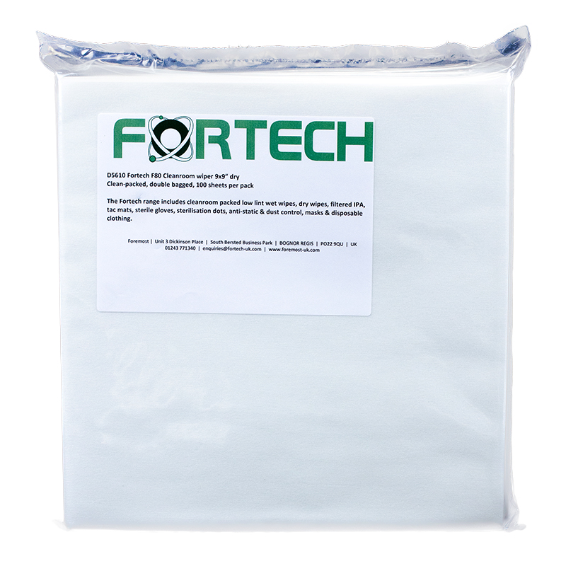 Fortech Cleanroom F80 wiper 9x9" cleanpack doublebagged 100s