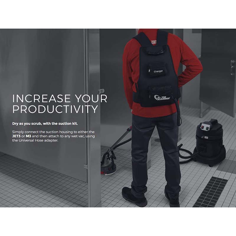 Dry as you scrub with this suction kit. Simply connect to suction housing to either Jet3 or M3, then attach to any wet vac with the Universal Hose Adapter.