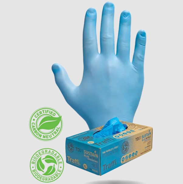 New - Carbon neutral, Biodegradable, Blue nitrile disposable glove size Medium